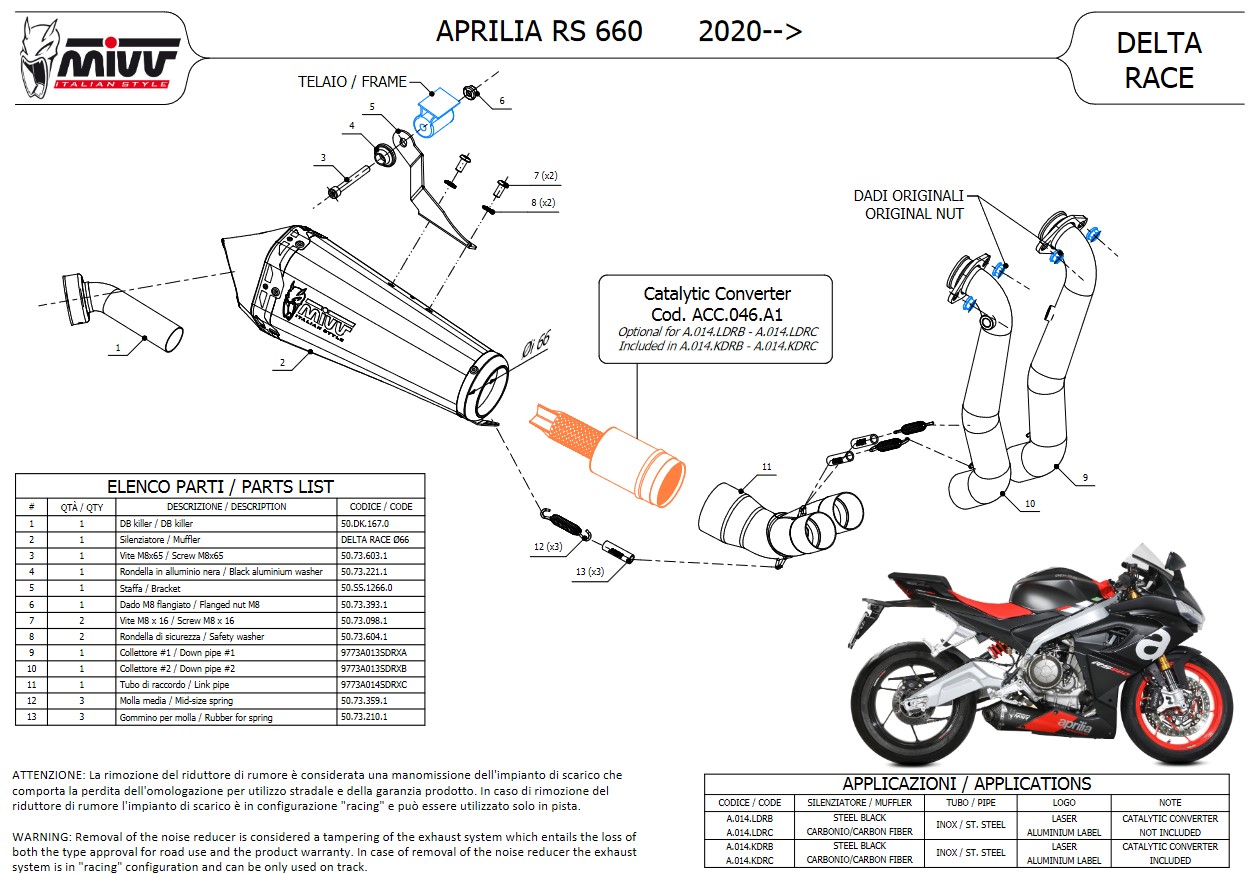 Mivv Delta Race RVS Black Compleet Uitlaatsysteem met E-keur Aprilia RS 660 2020 > 2024