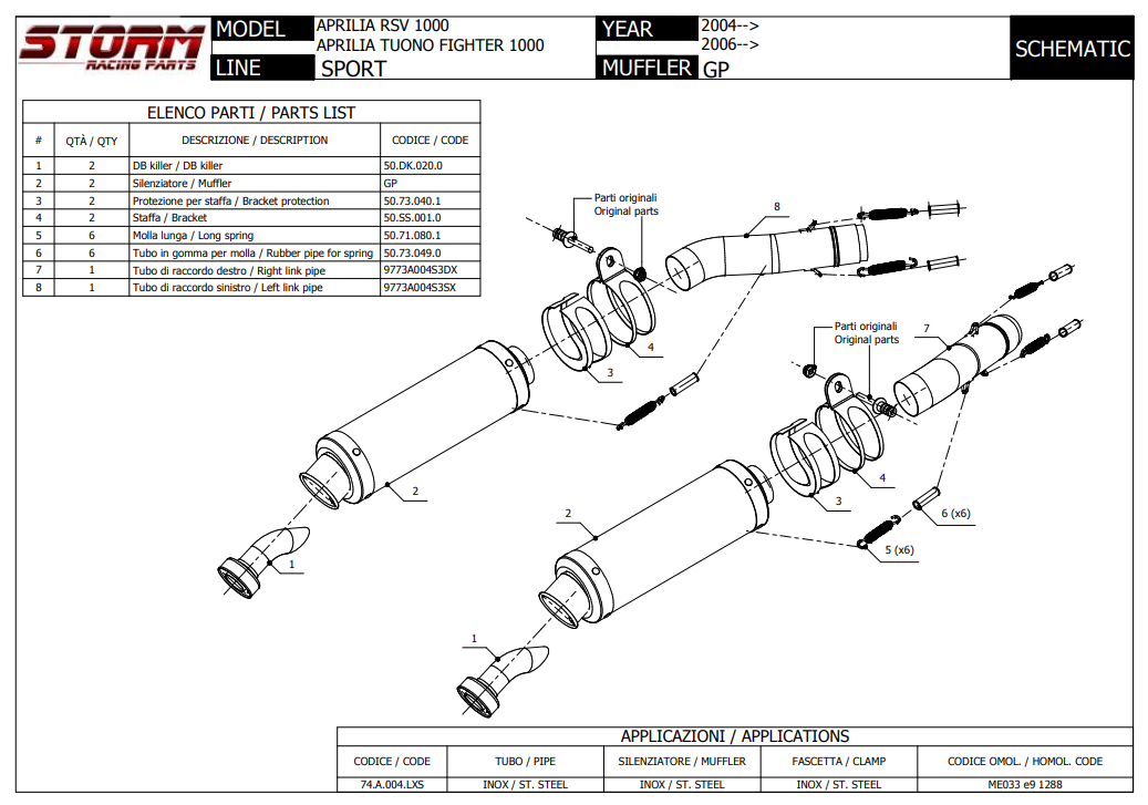 Storm by Mivv GP RVS Black Slip-on Einddemper Set met E-keur APRILIA RSV 1000 2004 - 2008