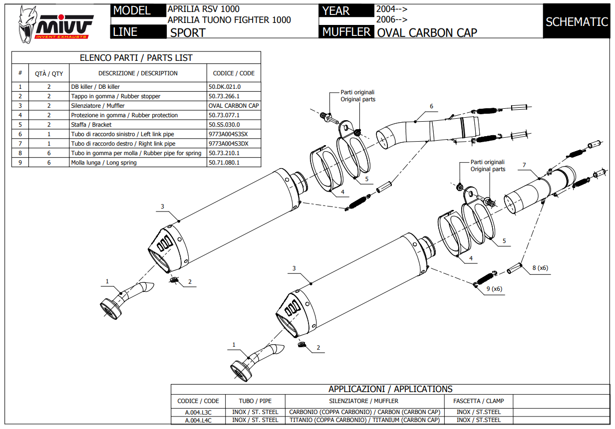 Mivv Oval Carbon met Carbon Cap Slip-on Einddemper Set (L+R) met E-keur Aprilia Tuono Fighter 1000 2006 > 2010