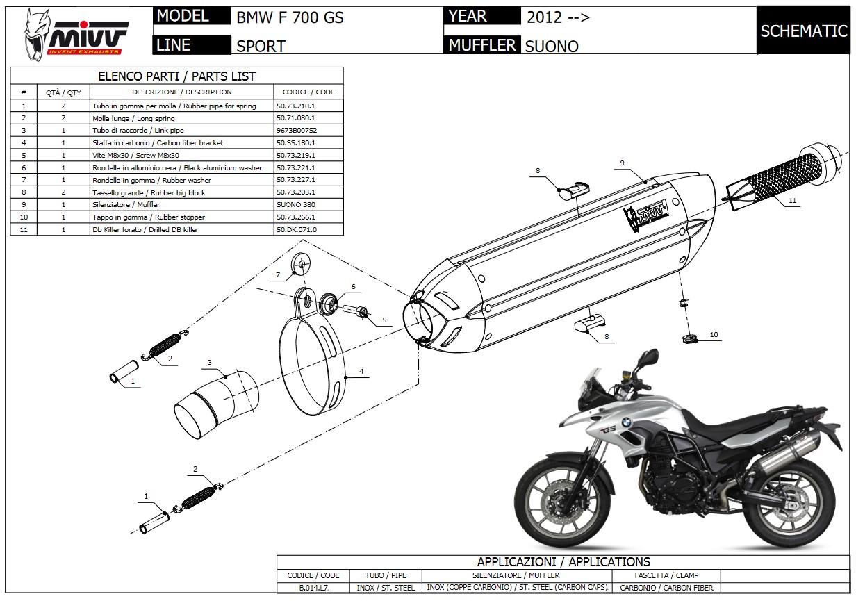 Mivv Suono RVS Black Slip-on Einddemper met E-keur BMW F 700 GS 2012 > 2017
