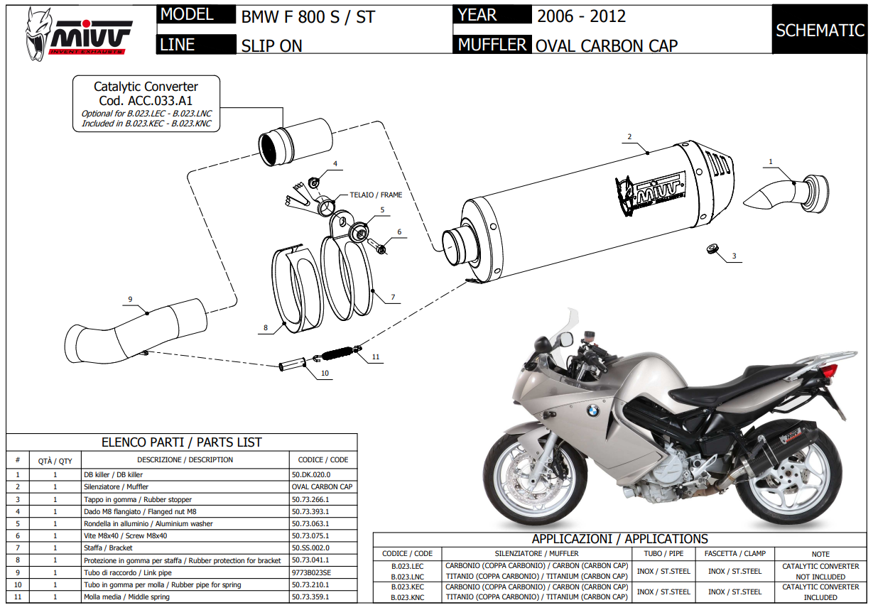 Mivv Oval Carbon met Carbon Cap Slip-on Einddemper met E-keur BMW F 800 S / ST 2006 > 2012