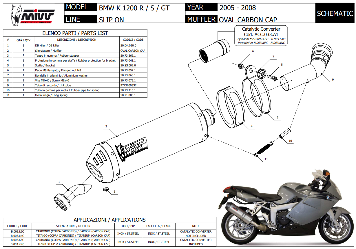 Mivv Oval Carbon met Carbon Cap Slip-on Einddemper met E-keur BMW K 1200 GT 2005 > 2008
