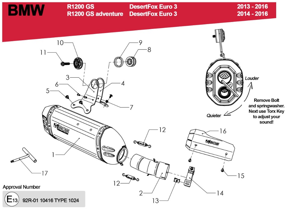 BOS Desert Fox RVS Matt Einddemper met E-keur BMW R 1200 GS / Adventure 2013 / 2016