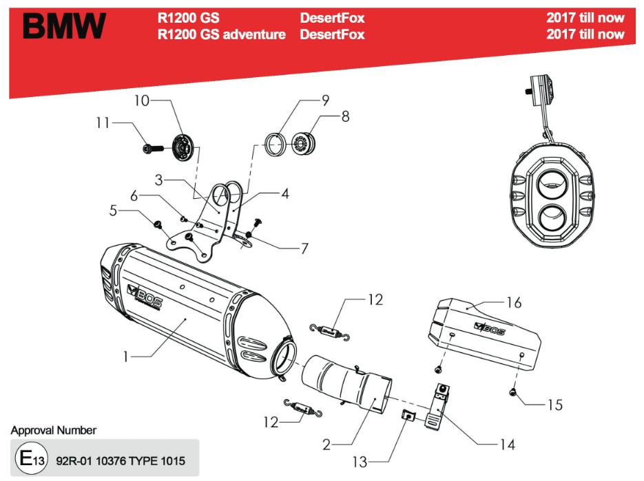 BOS Desertfox Black Edition Einddemper met Euro4 keuring BMW R 1200 GS / Adventure 2017 - 2020