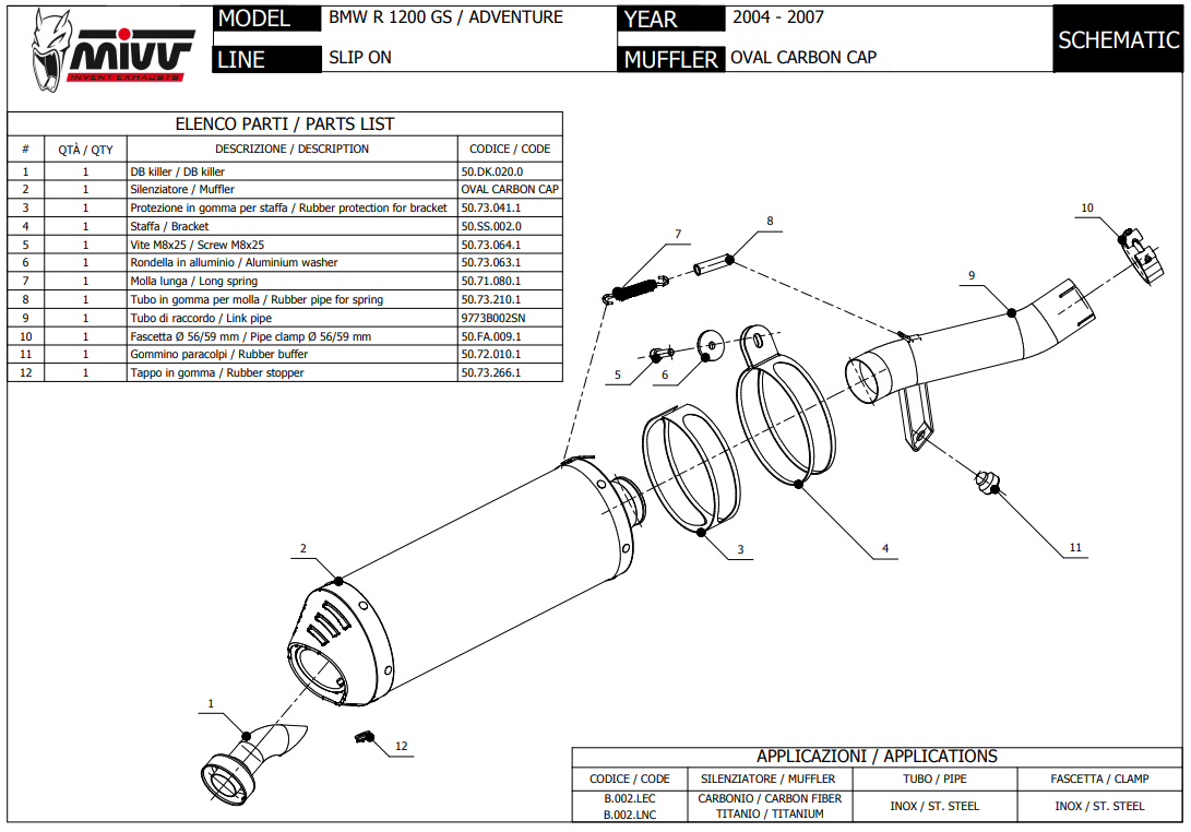 Mivv Oval Carbon met Carbon Cap Slip-on Einddemper met E-keur BMW R 1200 GS 2004 > 2007