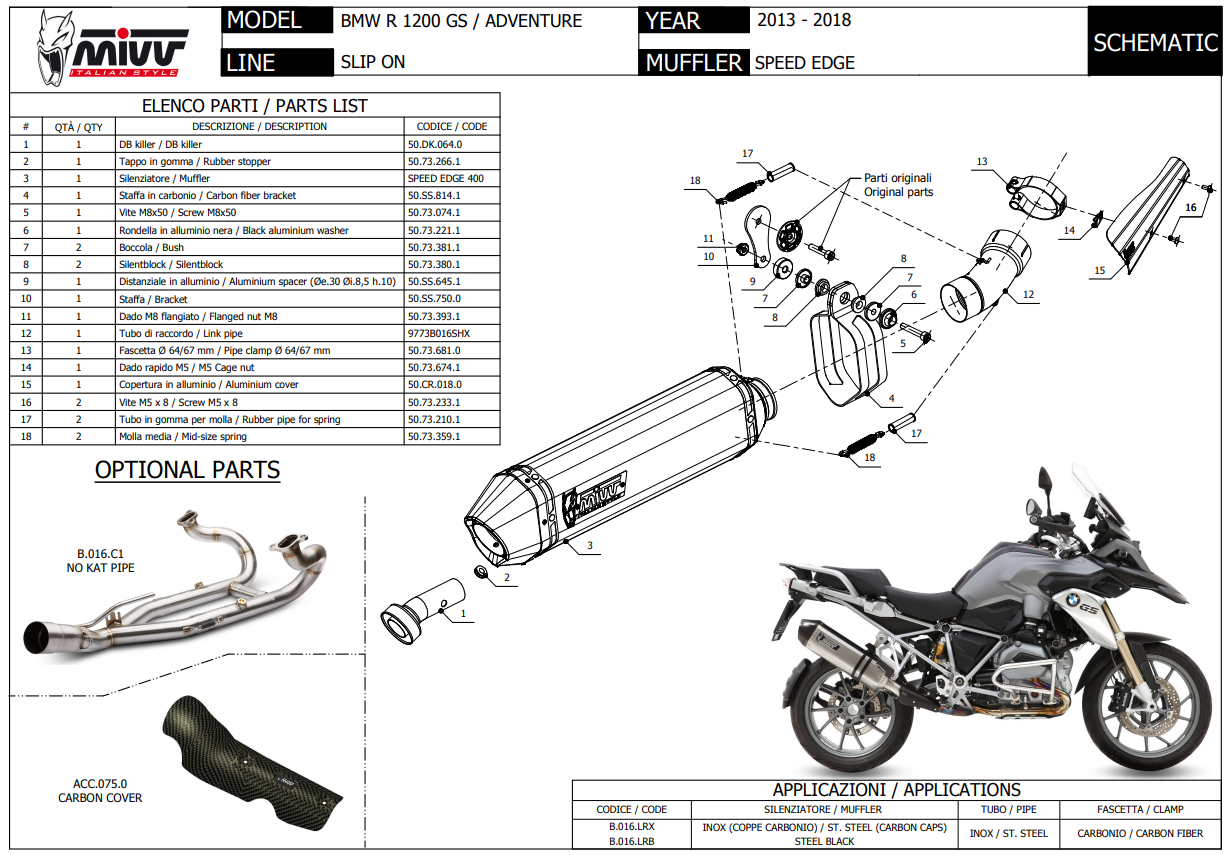 Mivv Speed Edge RVS Slip-on Einddemper met E-keur Euro3 en Euro4 BMW R 1200 GS 2013 > 2018