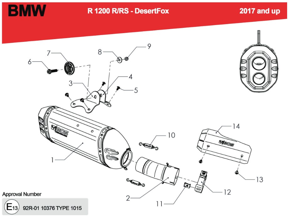 BOS Desert Fox Carbon Steel Einddemper met Euro4 Keuring BMW R 1200 RS 2017 > 2018