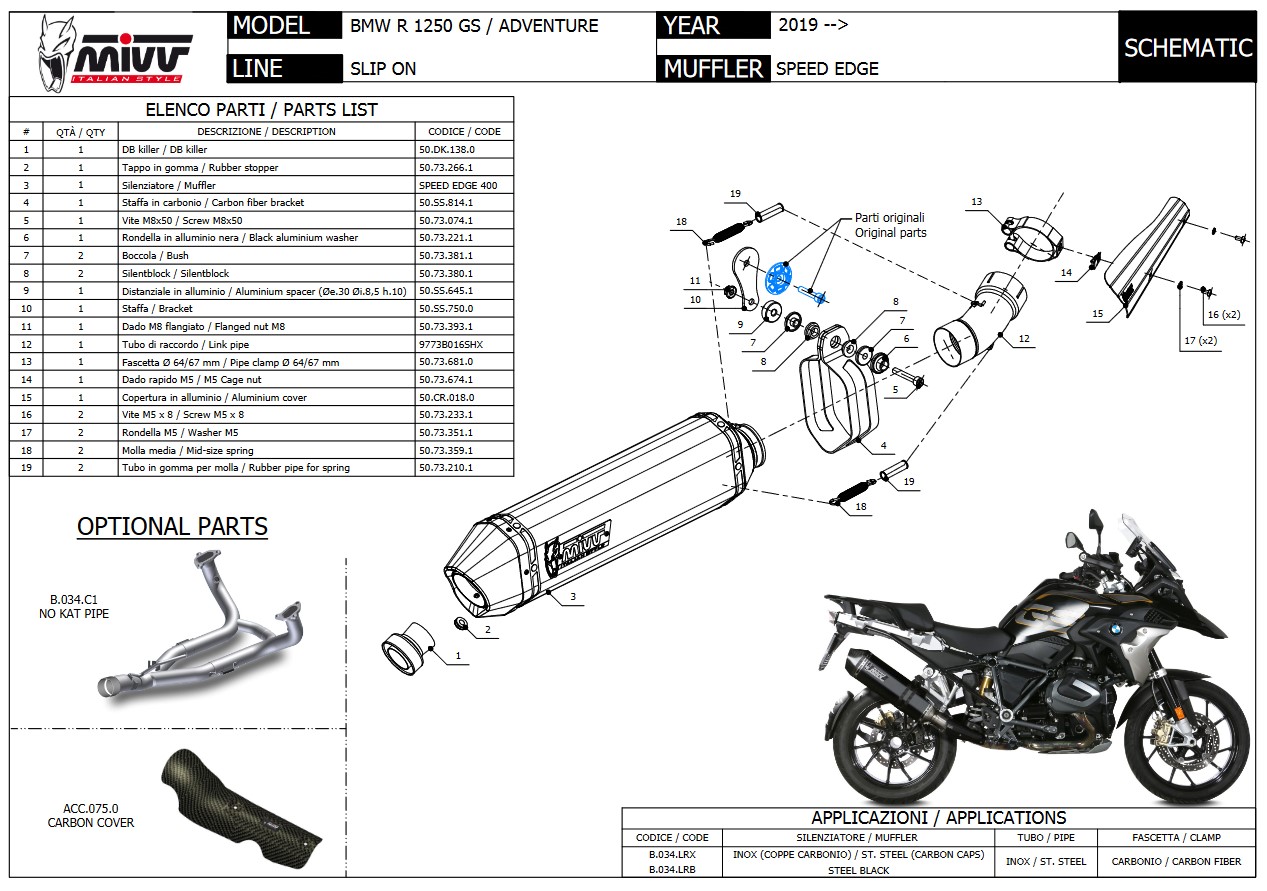 Mivv Speed Edge RVS Black Slip-on Einddemper met E-keur BMW R 1250 GS 2019 > 2023