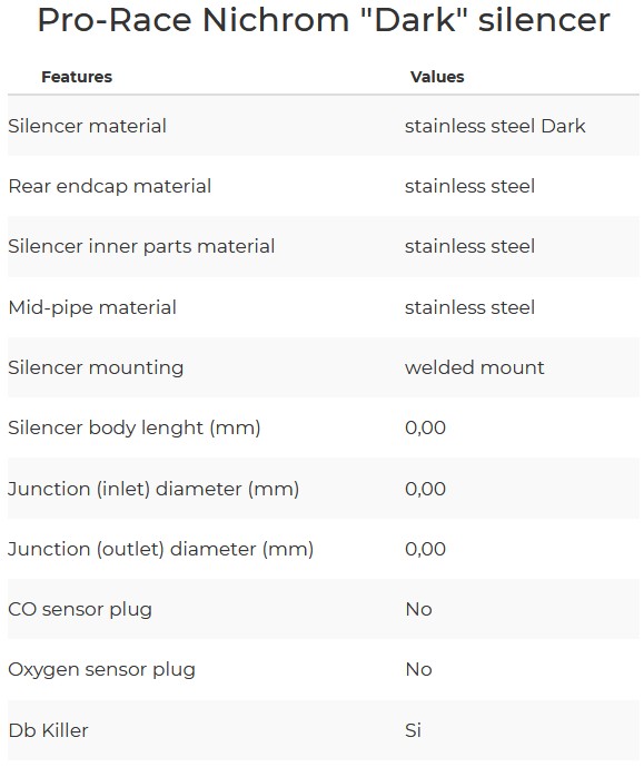 Type: Pro-Race Nichrom "Dark" einddemper incl. linkpipe