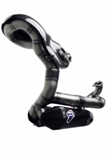 Termignoni introduces the new silencers for Ducati Panigale, made in carbon and titanium CUNB, the same used by the Termignoni Reparto Corse to realize the racing exhausts. The CUNB is a special titanium alloy that has excellent formability in ambient temperature and high mechanical strength even after the 600 °C, and resist oxidation above 800 °C. This allows us to reduce significantly the weight, while still providing a high level of performance and durability of the exhaust, much higher of the systems made of a commercial titanium alloy. Over the exclusive materials, that permits a lightweight of only 1,5 kg per silencer, another characteristic is given by the frontal exit of the gas, a solution that optimize the performance and the design. The silencers can fits on Ducati Panigale models 899 – 1299 – 1199R (MY 2015) and are supplied with a dedicated air filter.