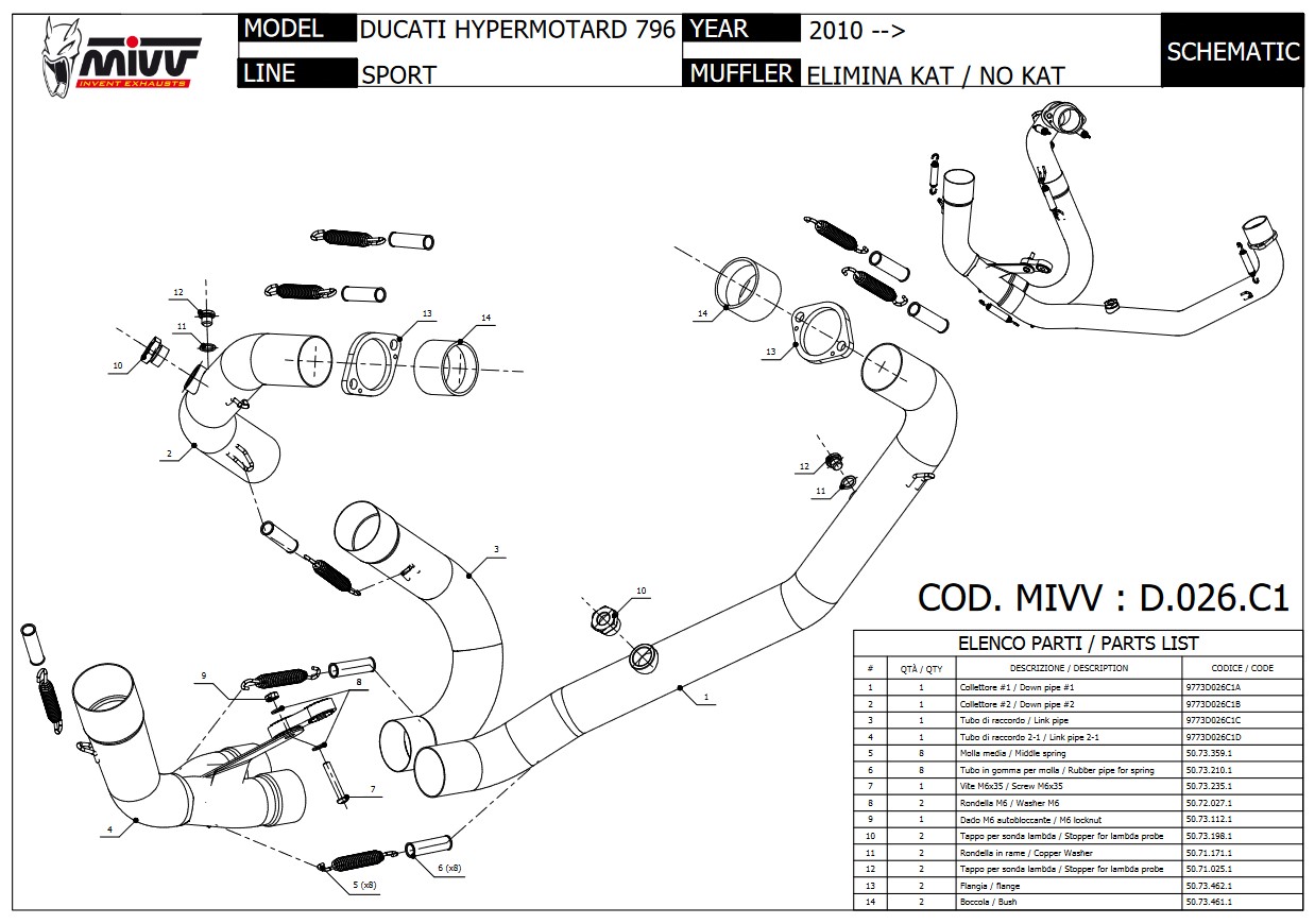 Mivv RVS Decat Pipe Ducati Hypermotard 796 2010 > 2012