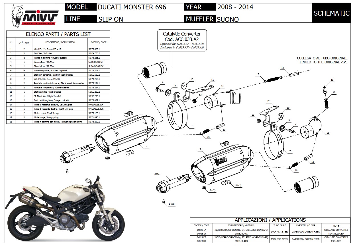 De Suono Black slip-on set (x2) is ontwikkeld voor maximale stijl en symmetrisch geluid. Elke demper heeft een lengte van 200 mm en bestaat uit zwart gecoat staal met een carbon voor- en eindkap. Dankzij het gebruik van roestvrij staal aan de binnenzijde en een carbon montagebeugel biedt deze set een perfecte balans tussen prestaties en gewicht. Met Ø 55 mm aansluiting en een totaalgewicht van slechts 1,77 kg per demper is deze dubbele setup klaar voor de straat of het circuit.