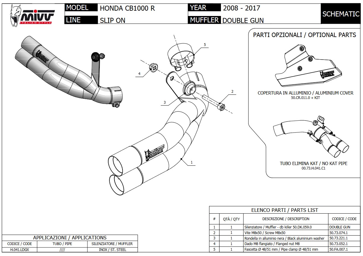Mivv Double Gun Full Titanium Slip-on Einddemper met E-keur Honda CB 1000 R 2008 > 2017