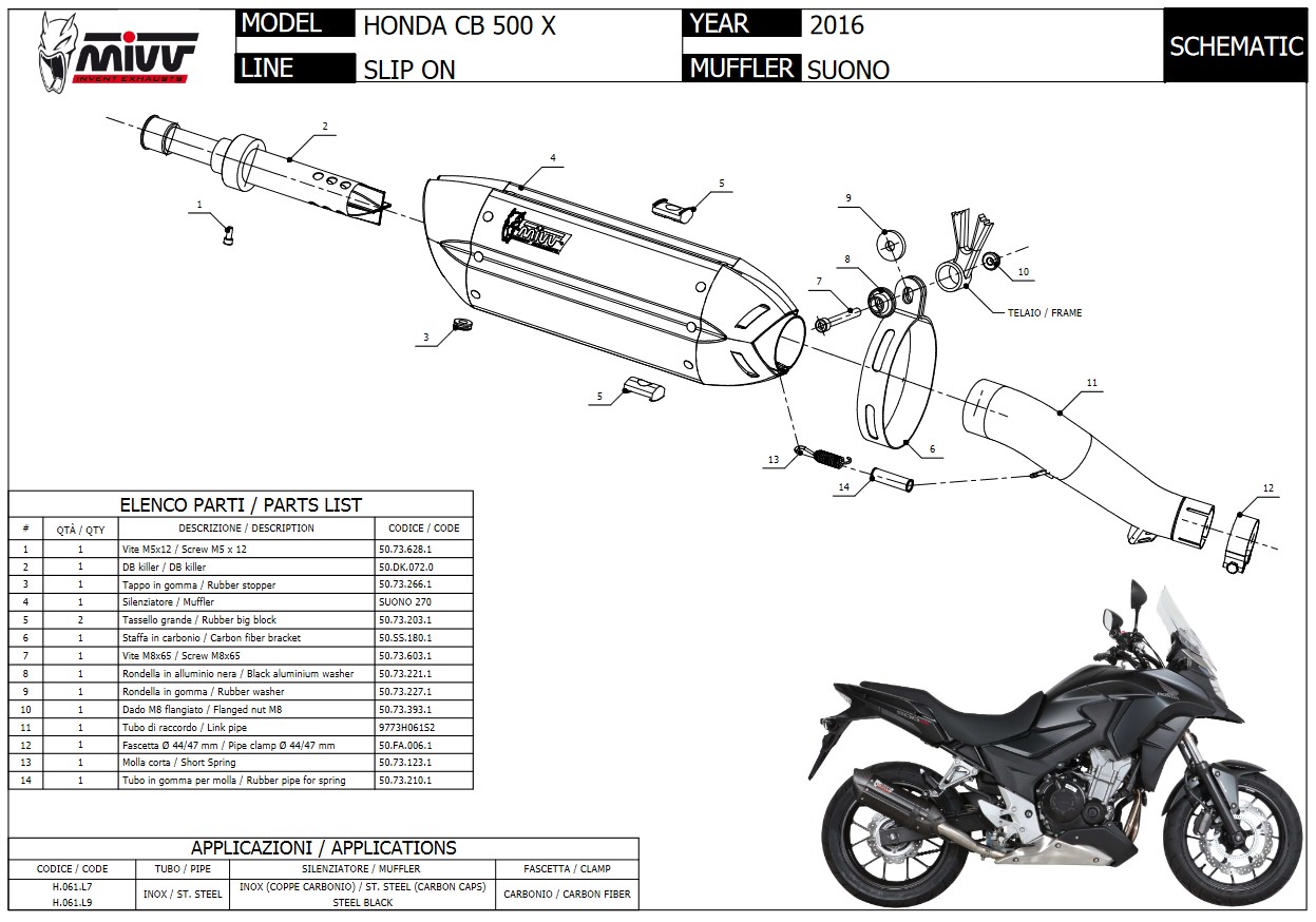 Mivv Suono Steel Black Slip-on Einddemper met E-keur Honda CB 500 X 2016