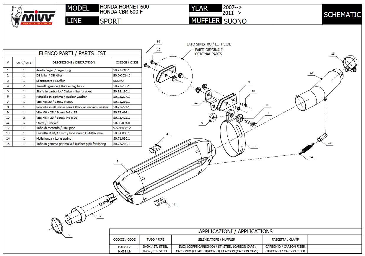Mivv Suono RVS Black Slip-on Einddemper met E-keur Honda Hornet 600 2007 > 2013