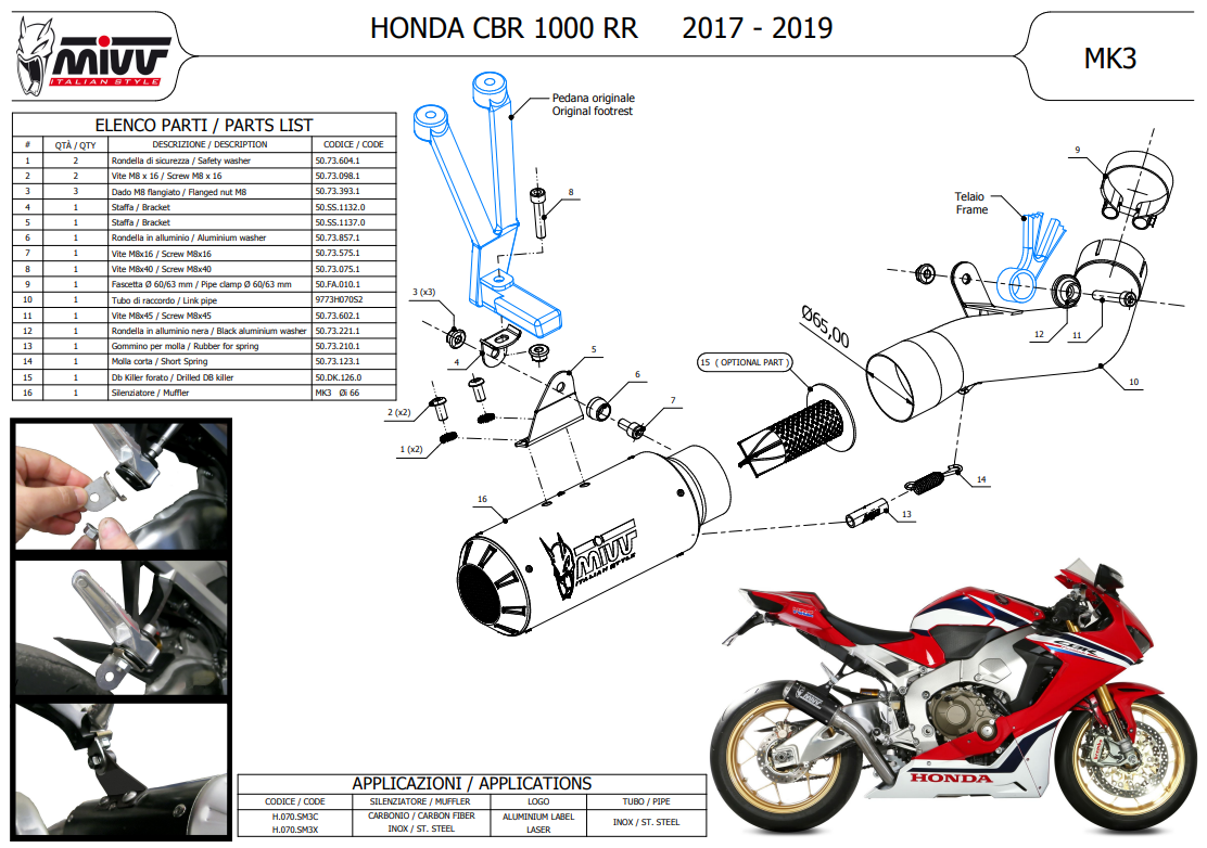 Mivv MK3 Carbon Einddemper zonder E-keur Honda CBR 1000 RR 2017 > 2019