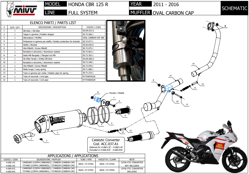 Mivv Oval Carbon met Carbon Cap Volledig Uitlaatsysteem met E-keur Honda CBR 125 R 2011 > 2016