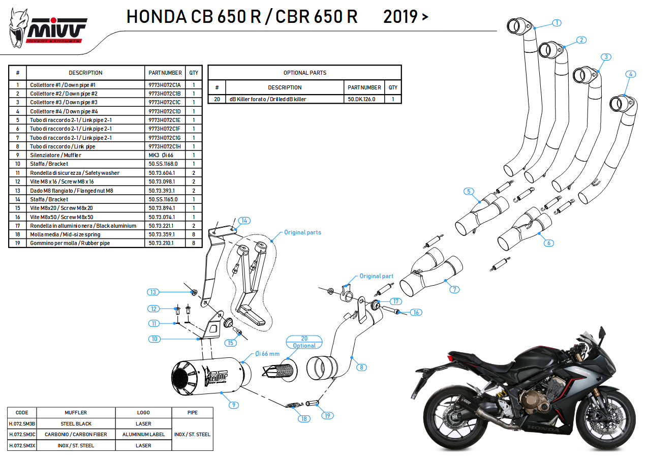 The MK3 line, resulting from the experience acquired in Moto3 and Moto2 world championships, is the perfect synthesis between performance and technology. With a design similar to the exhausts made for world championships Moto3 the MK3 is a compact product, capable of releasing the captivating mivv sound.