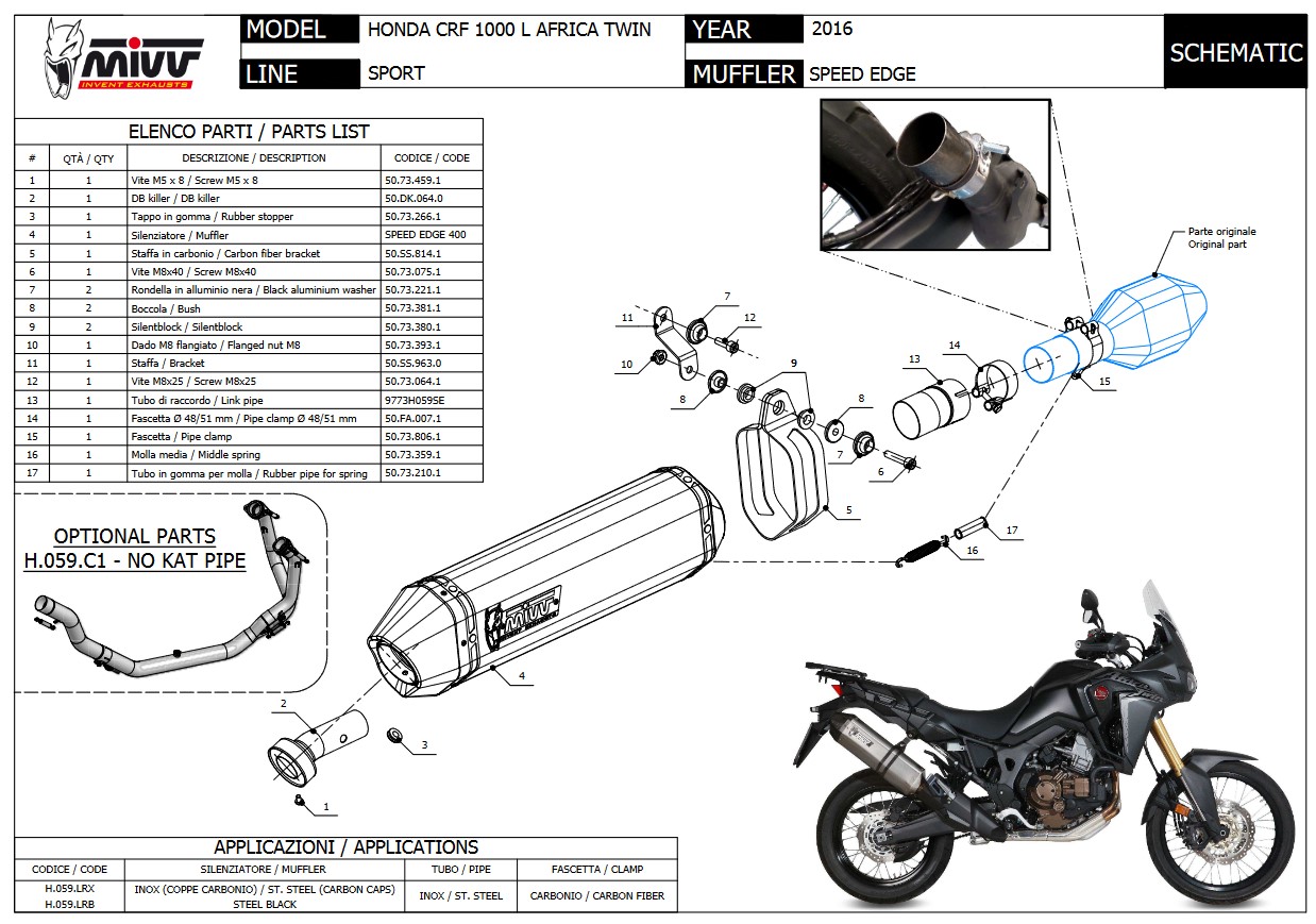 Mivv Speed Edge RVS Black Slip-on Einddemper met E-keur Honda CRF 1000 L Africa Twin 2016 > 2019