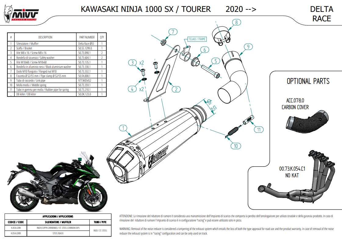 Mivv Delta Race RVS Black Einddemper met E-keur Kawasaki Ninja 1000 SX / Tourer 2020 > 2024