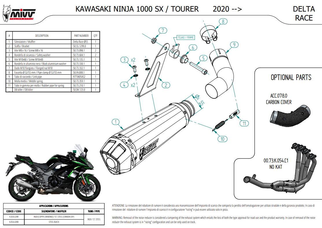 Mivv Delta Race RVS Einddemper met E-keur Kawasaki Ninja 1000 SX / Tourer 2020 > 2024