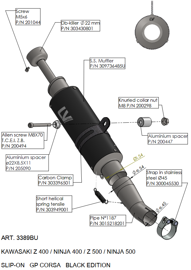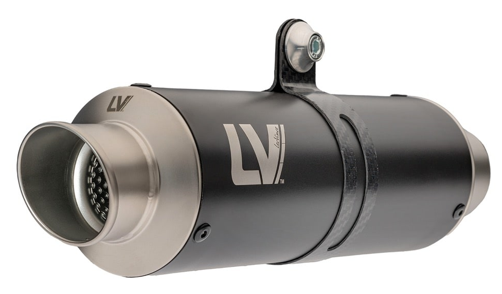 Deze uitlaat combineert een AISI 304 RVS demper met een duurzame matzwarte keramische coating en shot blasted eindkap met subtiel LV-logo. Met slechts 1,41 kg is hij uitzonderlijk licht en biedt hij een sportieve sound in een premium jasje.