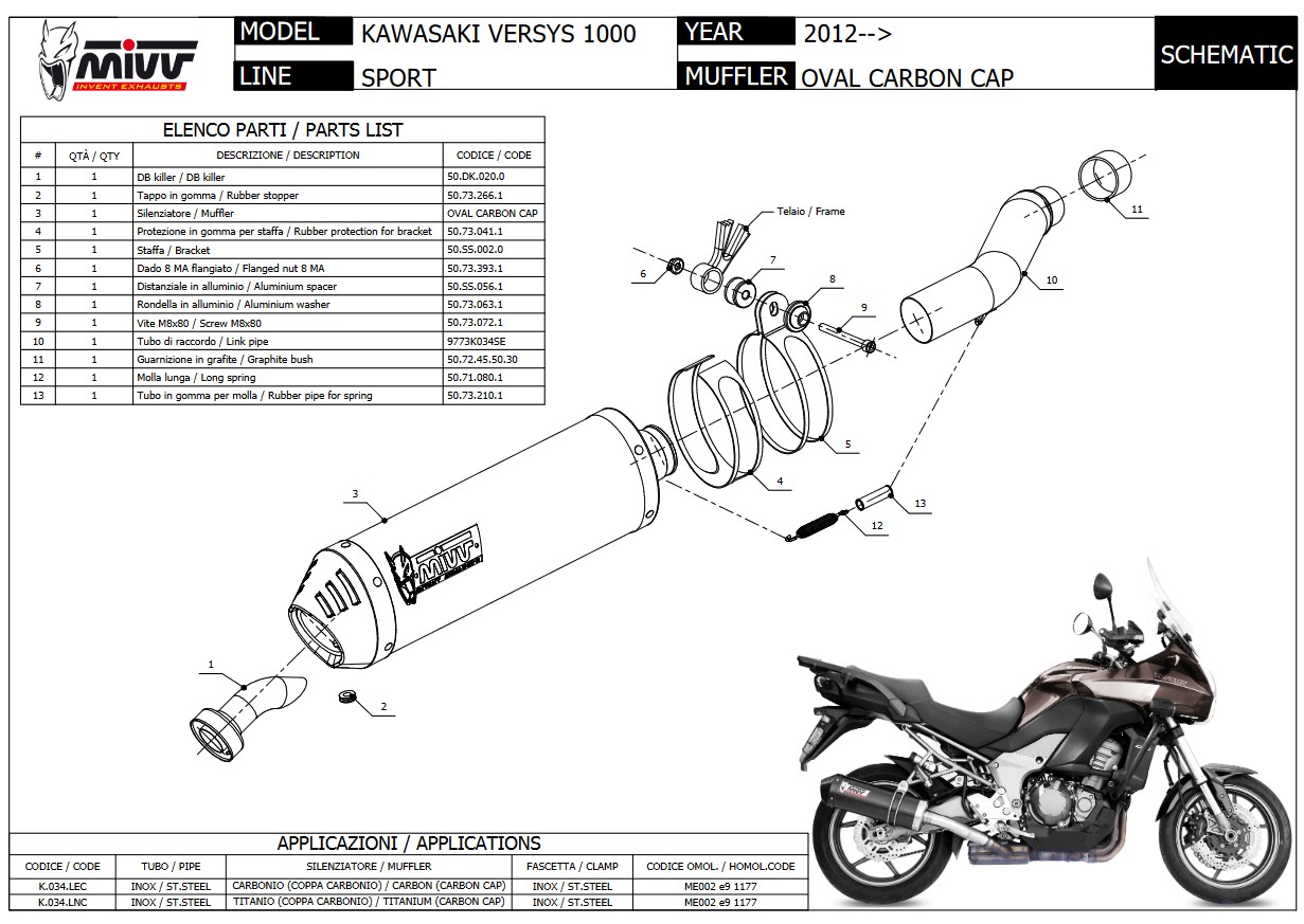 Mivv Oval Carbon met Carbon Cap Slip-on Einddemper met E-keur Kawasaki Versys 1000 2012 > 2014