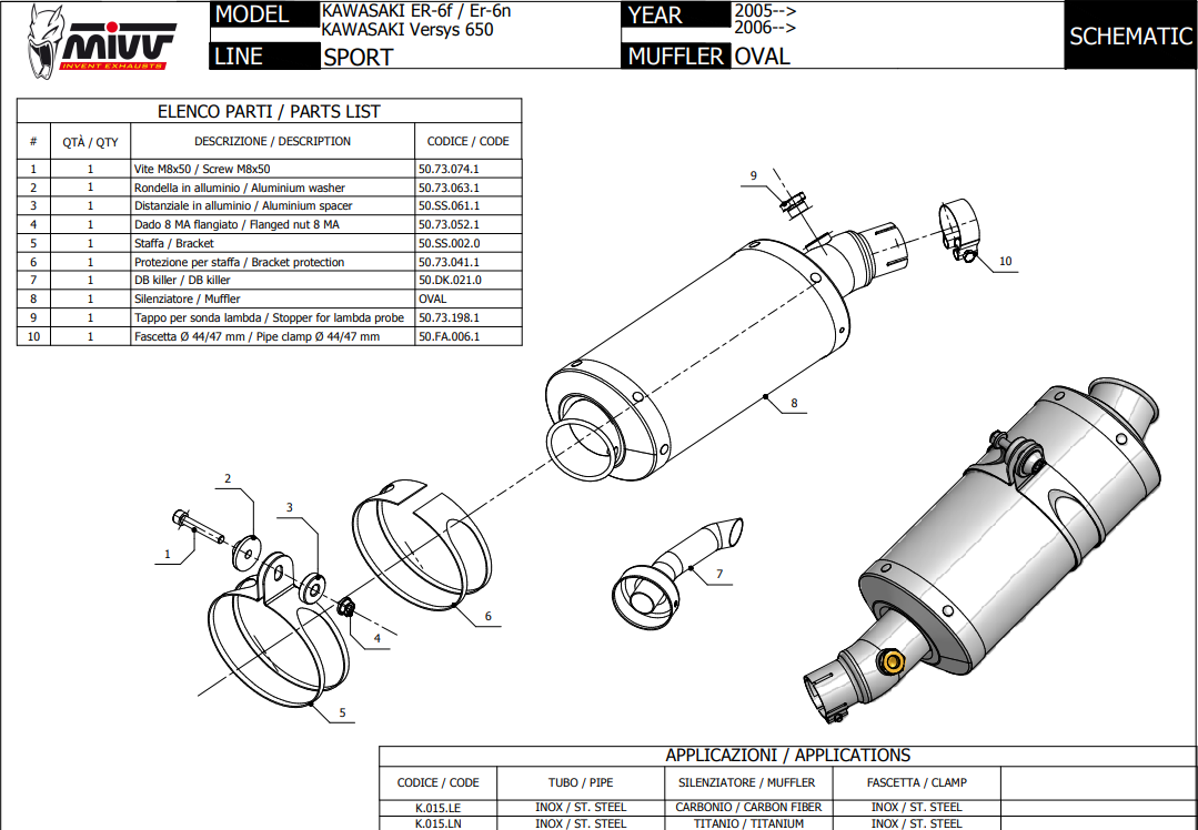 Mivv Oval Carbon Slip-on Einddemper met E-keur Kawasaki Versys 650 2006 > 2014