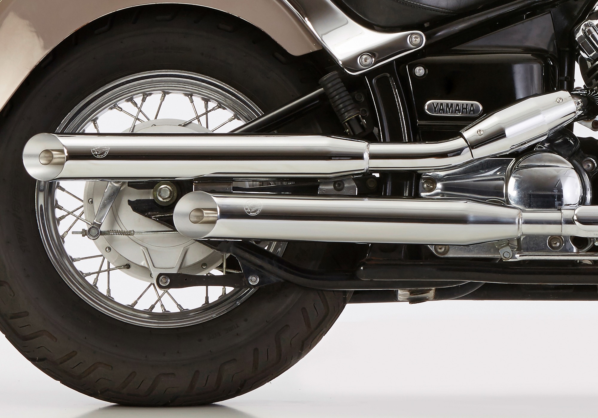 For older treasures: The FALCON Cromo Line is produced especially for custom bikes, chopper an cruiser with older year of manufacture. Iconic slash cut style and latest technology are combined here. This efficient exhaust system is high gloss chrome-plated and comes with deep chopper sound. With EG-BE.