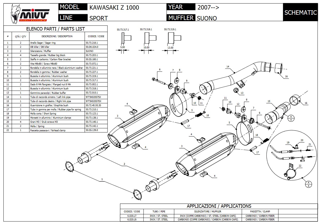 Mivv Suono RVS Dubbele Slip-on Einddemper (L+R) Set Kawasaki Z 1000 2007 > 2009