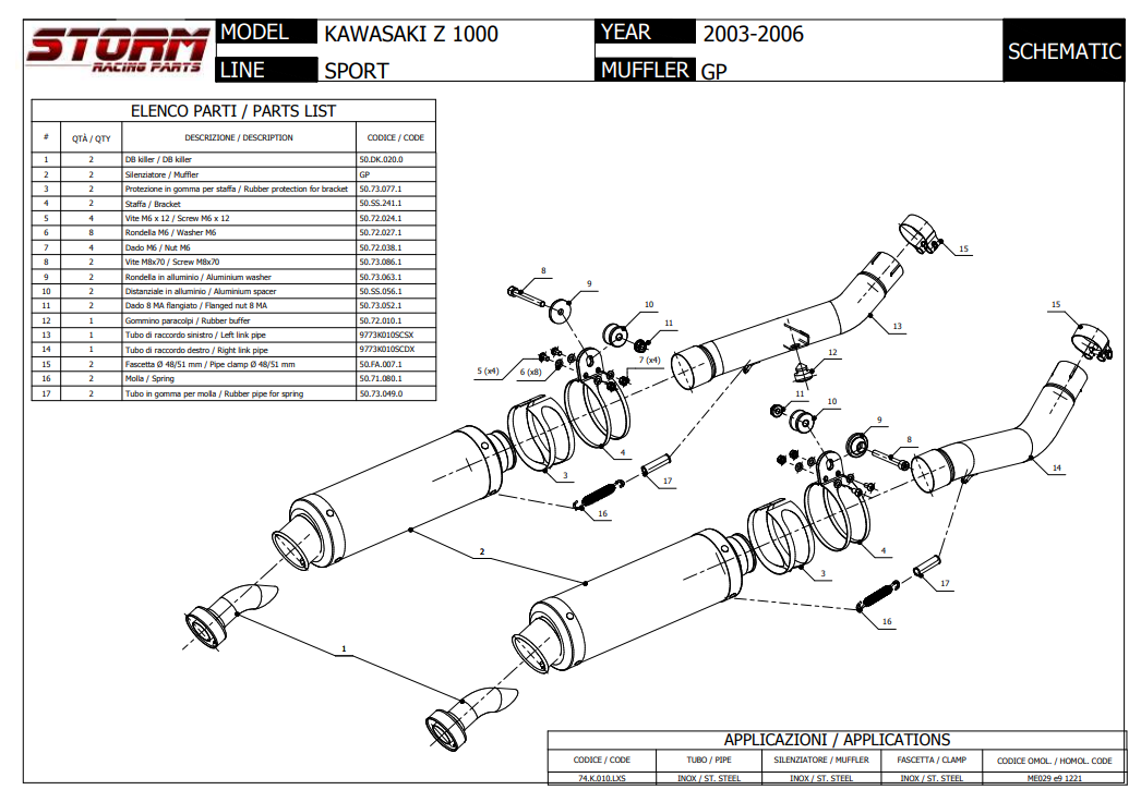 Storm By Mivv Dubbele GP RVS Black Slip-On Einddemper Met E-keur KAWASAKI Z 1000 2003 - 2006