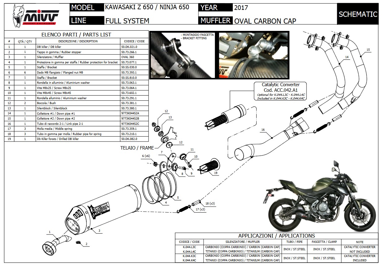 Mivv Titanium Oval Compleet Uitlaatsysteem met E-keur Kawasaki Z650 2017 > 2022