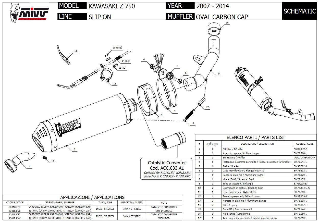 Mivv Oval Carbon met Carbon Cap Slip-on Einddemper met E-keur Kawasaki Z 750 2004 > 2006
