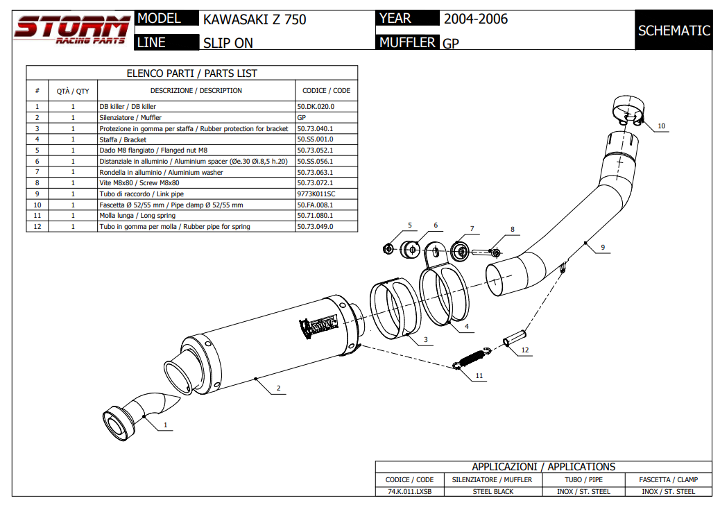 Storm By Mivv GP RVS Black Slip-On Einddemper Met E-keur KAWASAKI Z 750 2004 - 2006