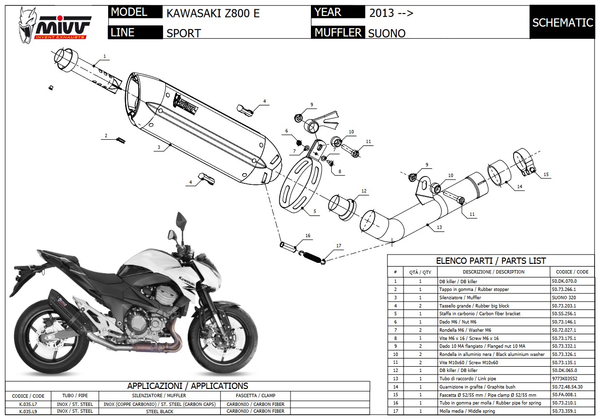 Mivv Suono RVS Black Slip-on Einddemper met E-keur Kawasaki Z 800 E 2013 > 2016