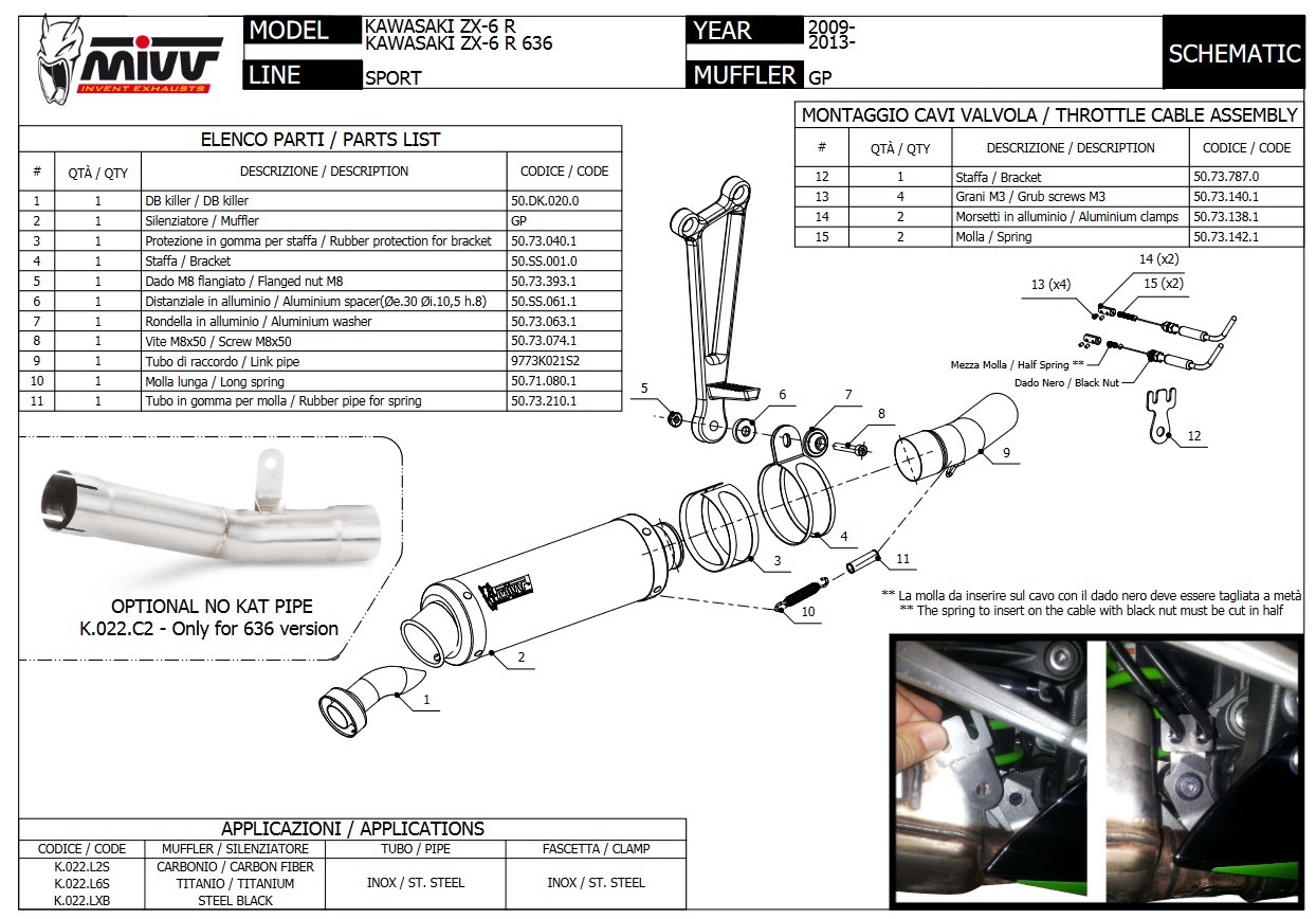 Mivv GP Carbon Slip-on Einddemper met E-keur Kawasaki ZX-6 R 636 2003 > 2004