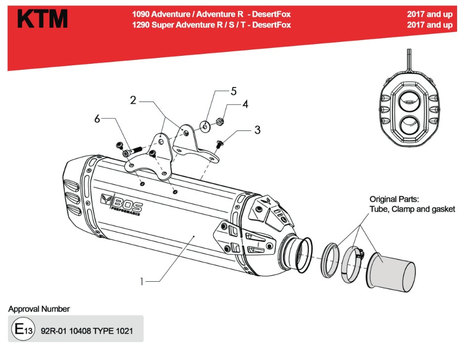 BOS Desert Fox Carbon Steel Einddemper met E-keur KTM 1090 Adventure / R 2017 > 2020