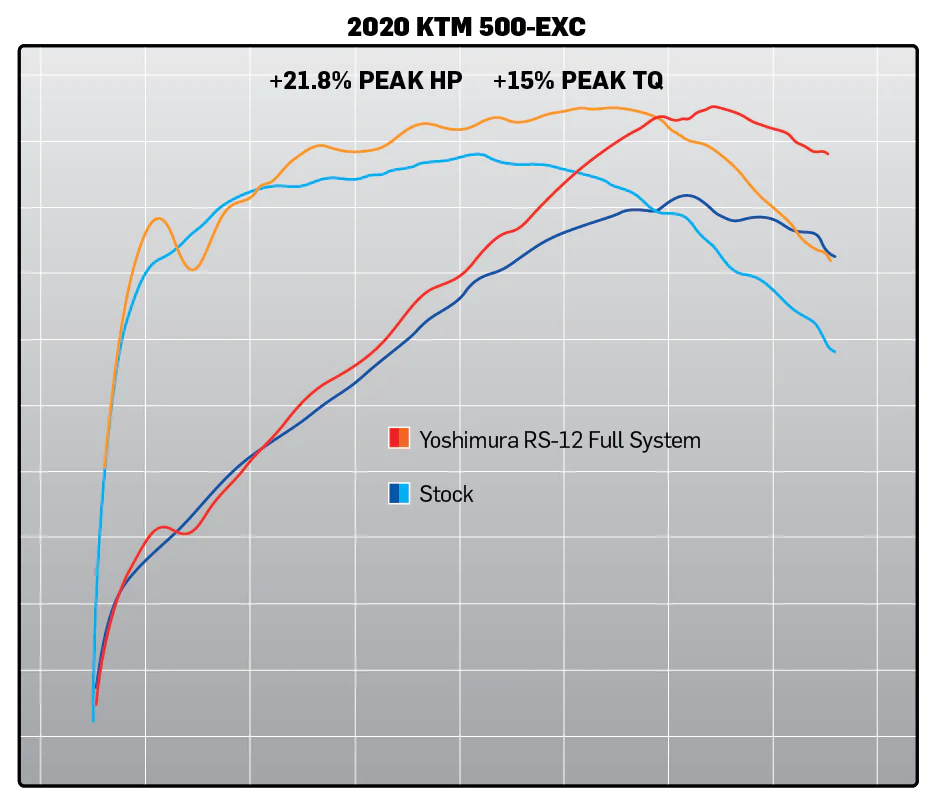 Packed with features, the RS-12 Enduro Series offering comes with a USFS approved spark arrester and massive gains in power. The KTM 500 EXC-F saw gains of 21.8% peak HP and 15% peak torque on the dyno. On the trail this translates more raw grunt when you need to get up that rock or over that log. On the street it provides more get up and go to get to the next trailhead.