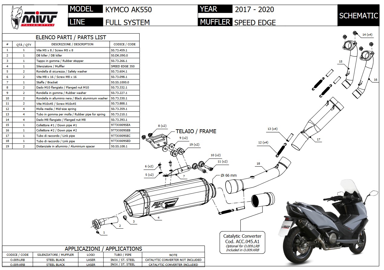 Mivv Speed Edge RVS Black Compleet 2-1 Uitlaatsysteem met E-keur Kymco AK550 2017 > 2020