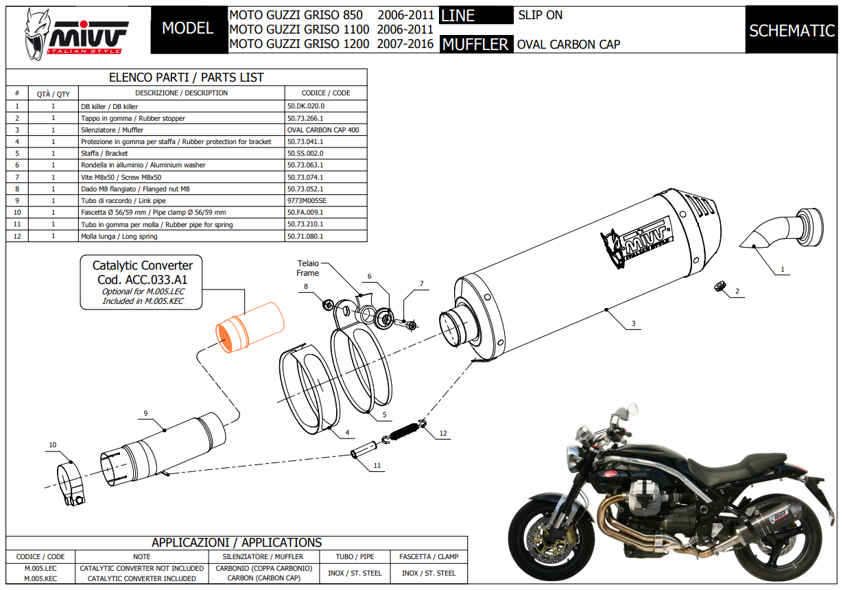 Mivv Oval Carbon met Carbon Cap Slip-on Einddemper met E-keur Moto Guzzi Griso 1200 2007 > 2016