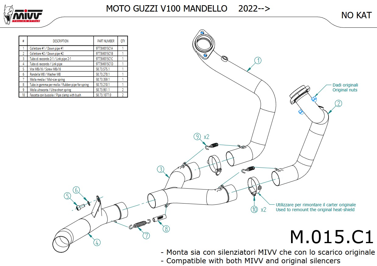 Mivv RVS Voorbochten Moto Guzzi V100 Mandello 2022 - 2024