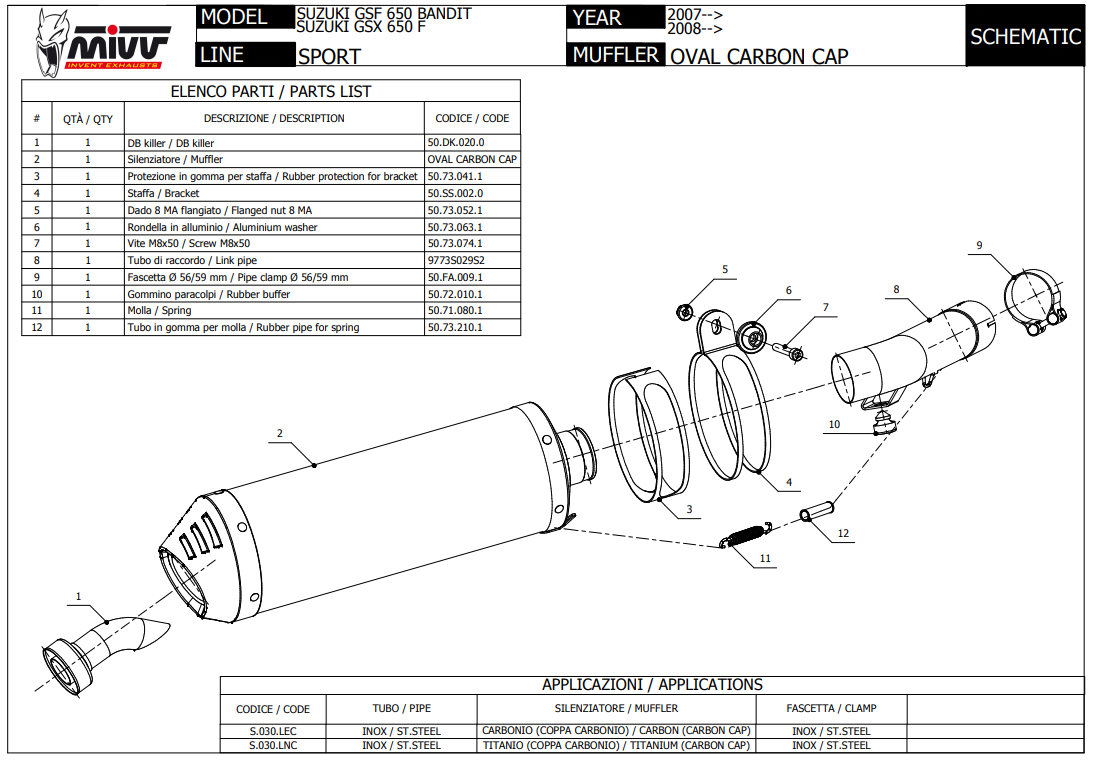 Mivv Oval Carbon met Carbon Cap Slip-on Einddemper met E-keur Suzuki GSF 650 Bandit 2007 > 2015