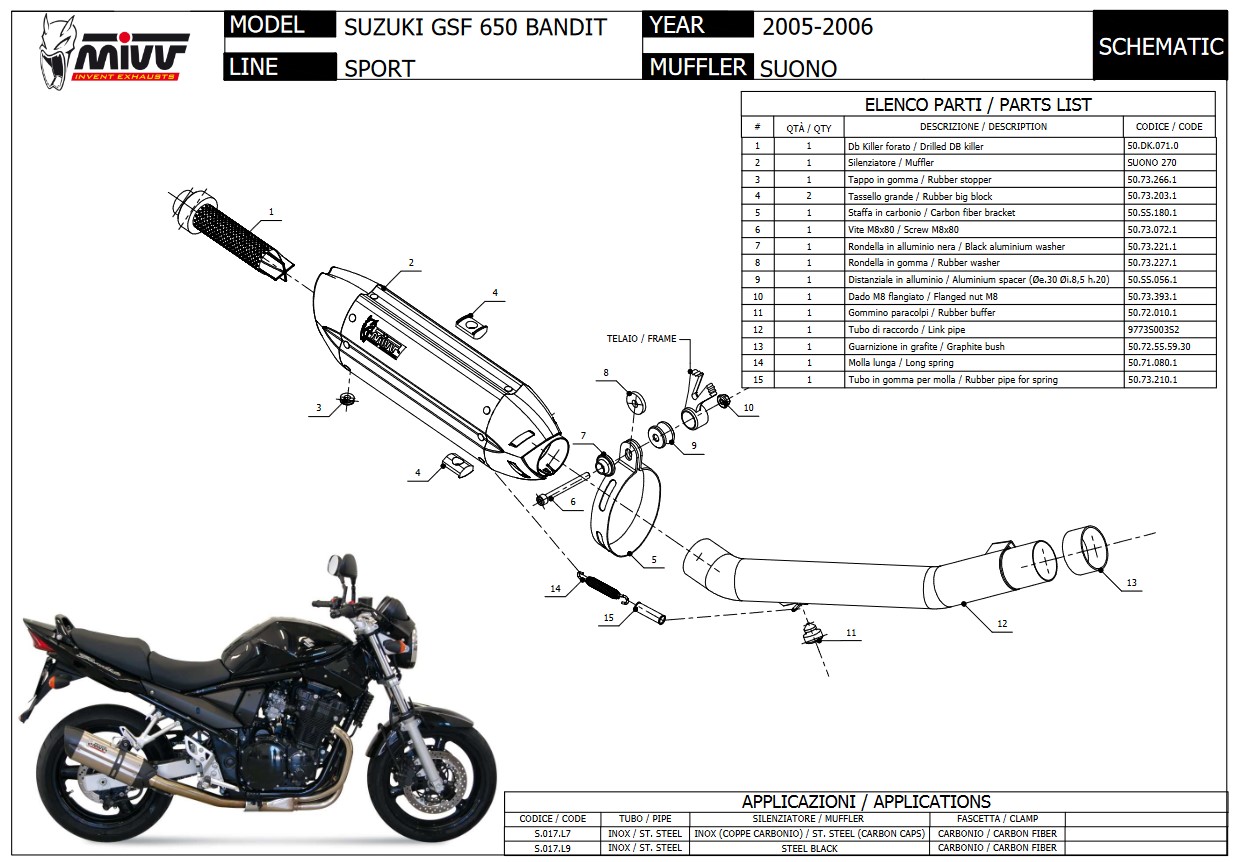 Mivv Suono RVS Black Slip-on Einddemper met E-keur Suzuki GSF 650 Bandit 2005 > 2006