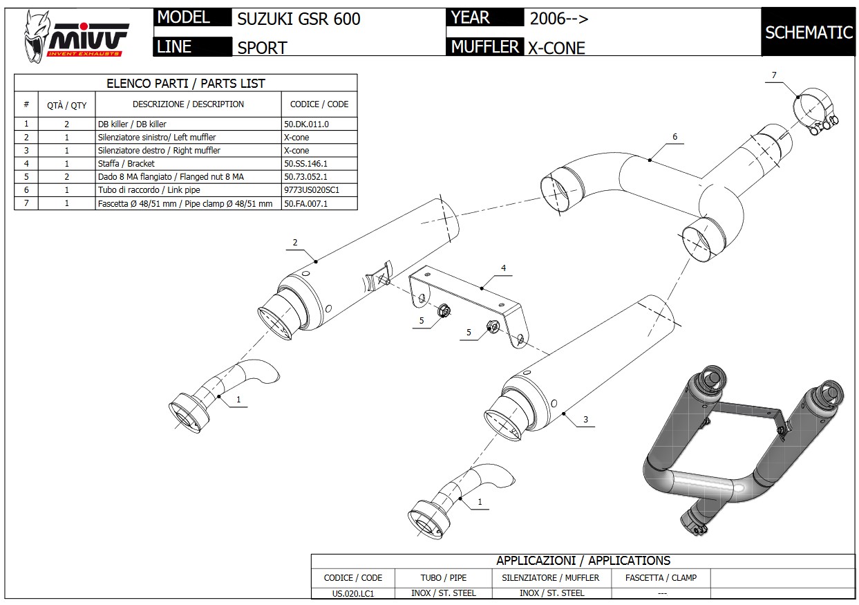 Mivv X-Cone RVS Dubbele Underseat Einddemper (L+R) Set met E-keur Suzuki GSR 600 2006 > 2010
