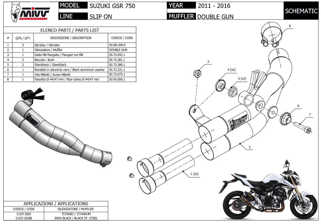 - Double Gun twin-outlet – twee uitlaatopeningen voor een rauwe, korte sound.