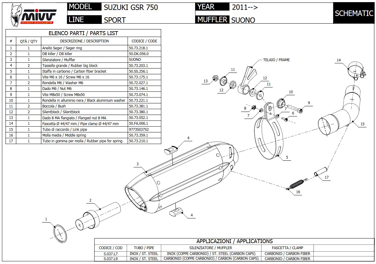 Mivv Suono RVS Black Slip-on Einddemper met E-keur Suzuki GSR 750 2011 > 2016