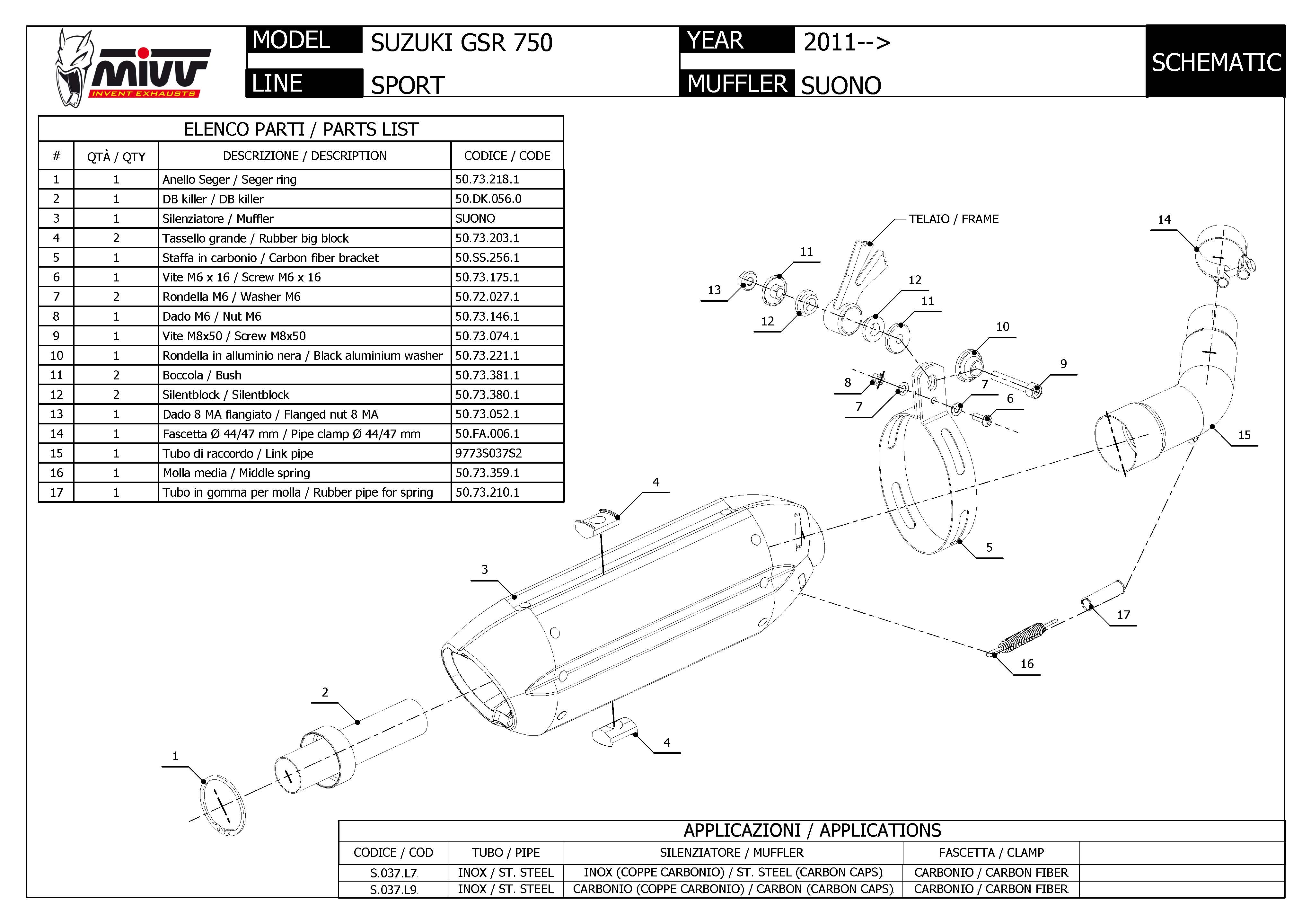 MIVV Slip-On Suono RVS (INOX) voor Suzuki GSR 750 2011-2016 met E-keurVoertuigtype: C5, C511Positie einddemper: standaardE-keur: JaBeschrijving:De Mivv Slip-on uitlaat is ontwikkeld om de esthetiek, sound en prestaties van de motor te verbeteren. Met maximale aandacht voor design is deze uitlaat ontworpen voor rijders die zich willen onderscheiden, ook met de uitstraling van hun motorfiets.