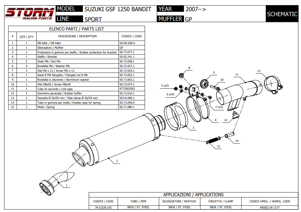 Storm By Mivv GP RVS Slip-On Einddemper Met E-keur SUZUKI GSX 1250 FA BANDIT 2009 - 2016