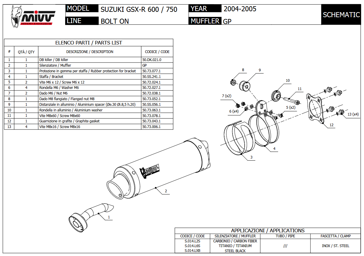 Alternatieve artikelen voor Mivv GP RVS Black Bolt-on EInddemper Carbon Endcap met E-keur Suzuki GSX-R600 / GSX-R750 2004 - 2005