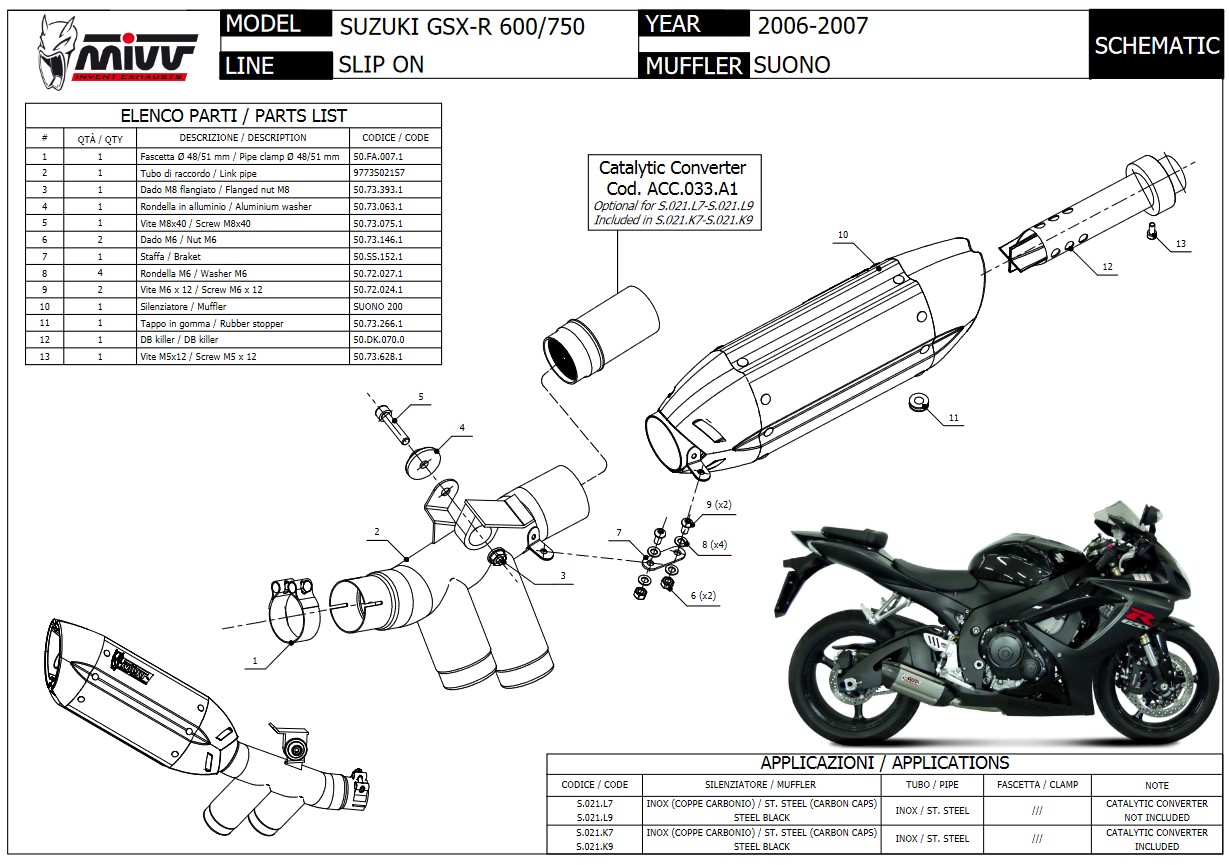 Mivv Suono RVS Slip-on Einddemper met E-keur Suzuki GSX-R 600 2006 > 2007